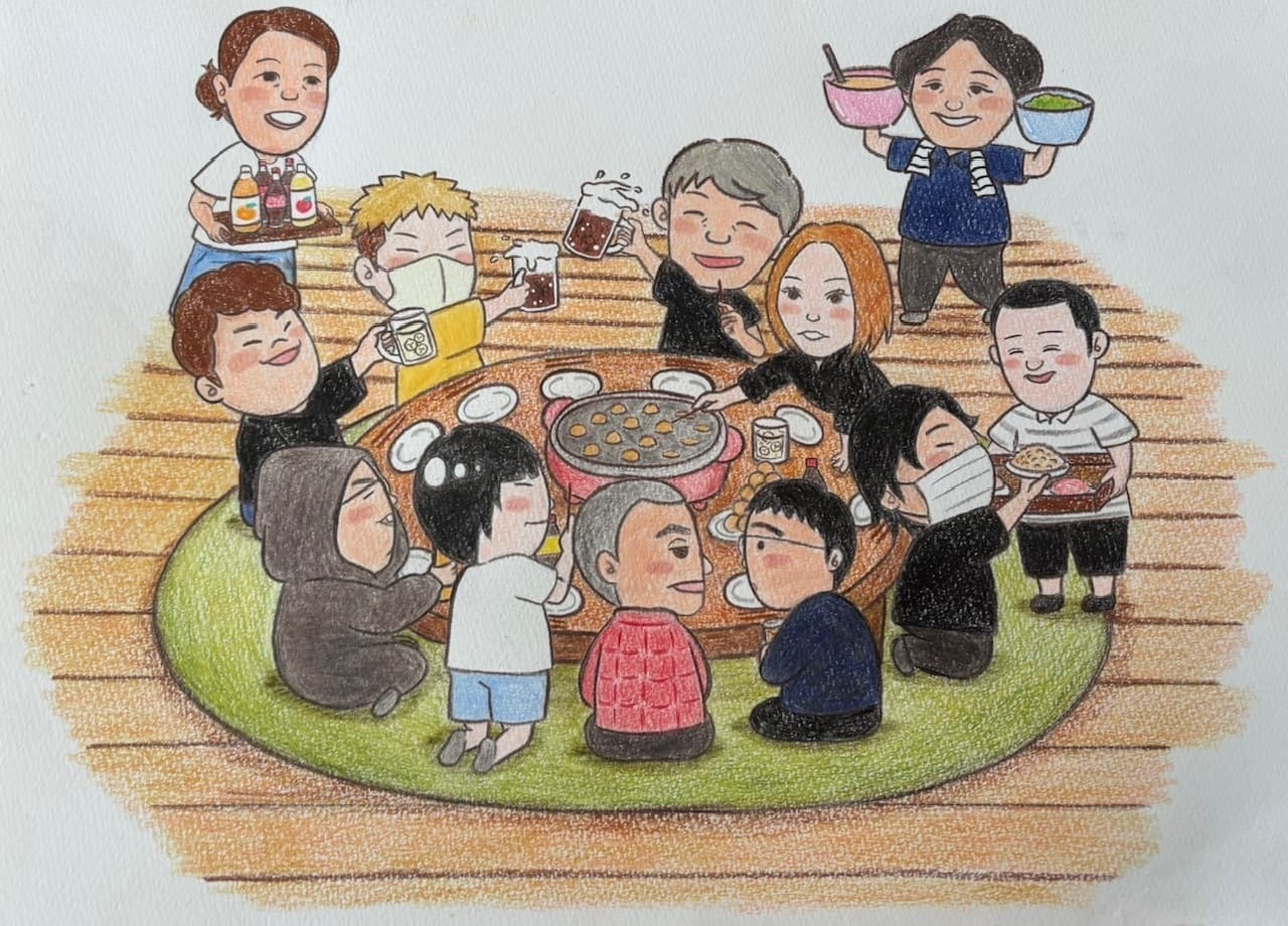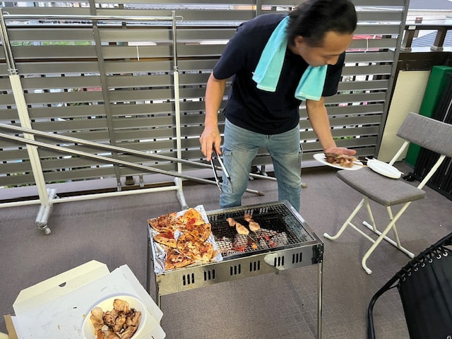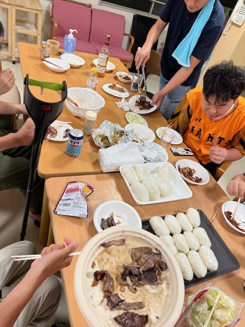 参加自由のたこ焼き大会や、焼き鳥大会、バーベキュー風イベントたまにしています。