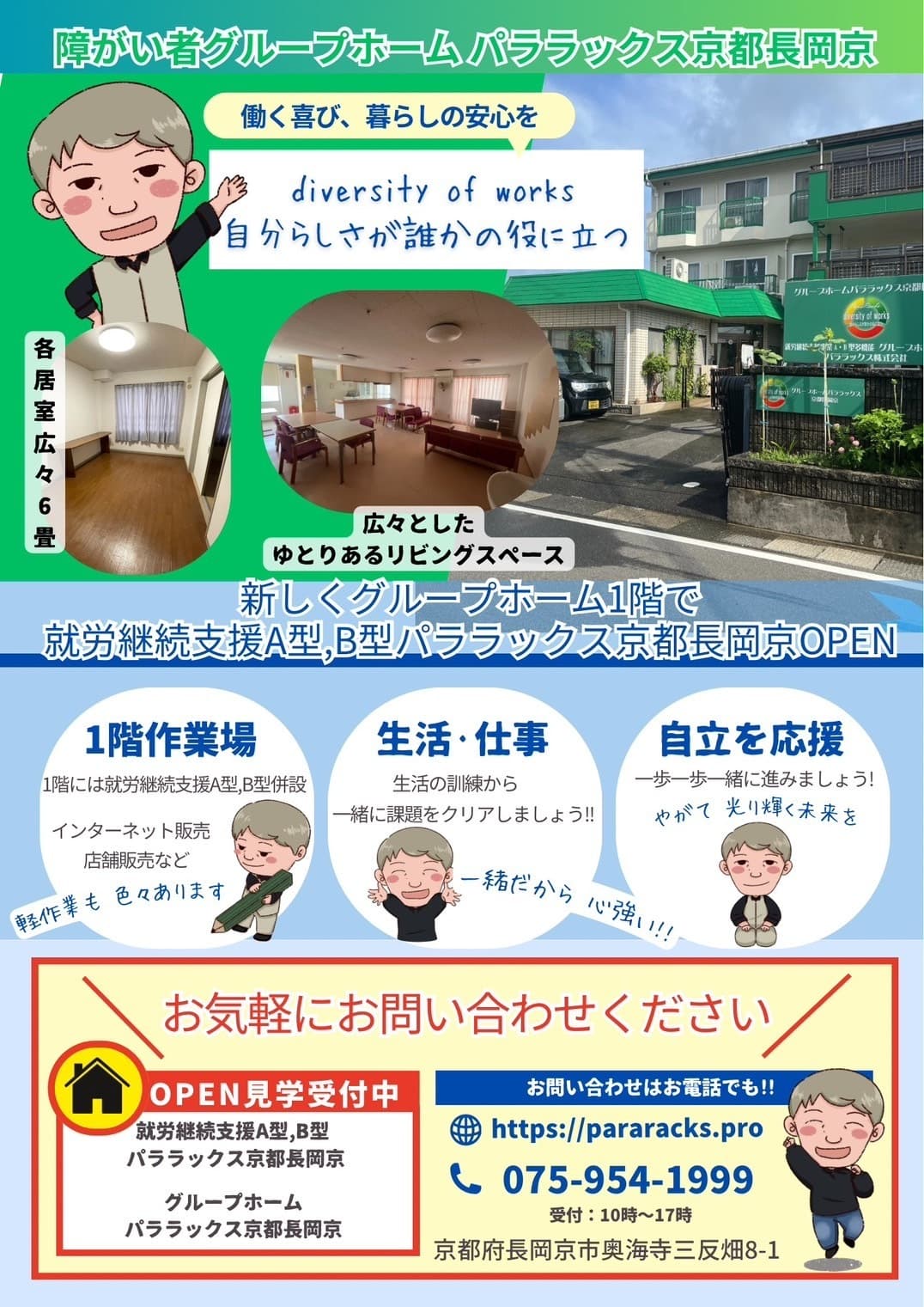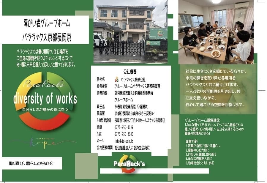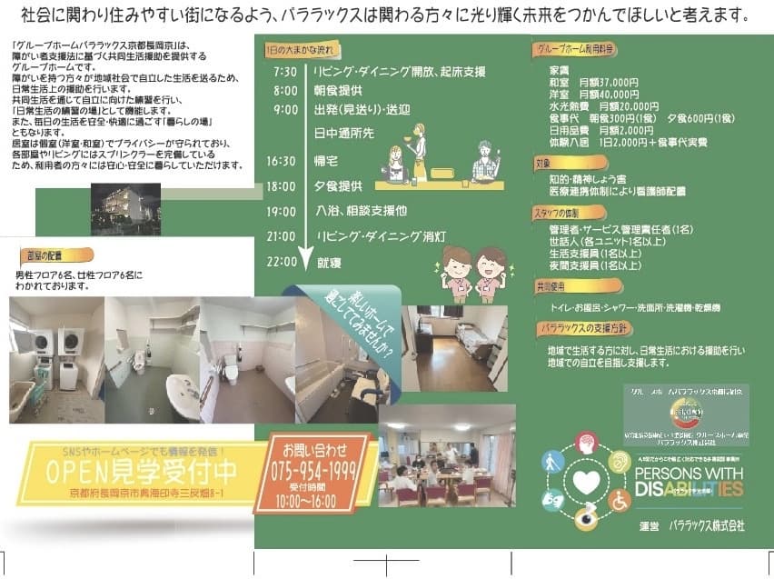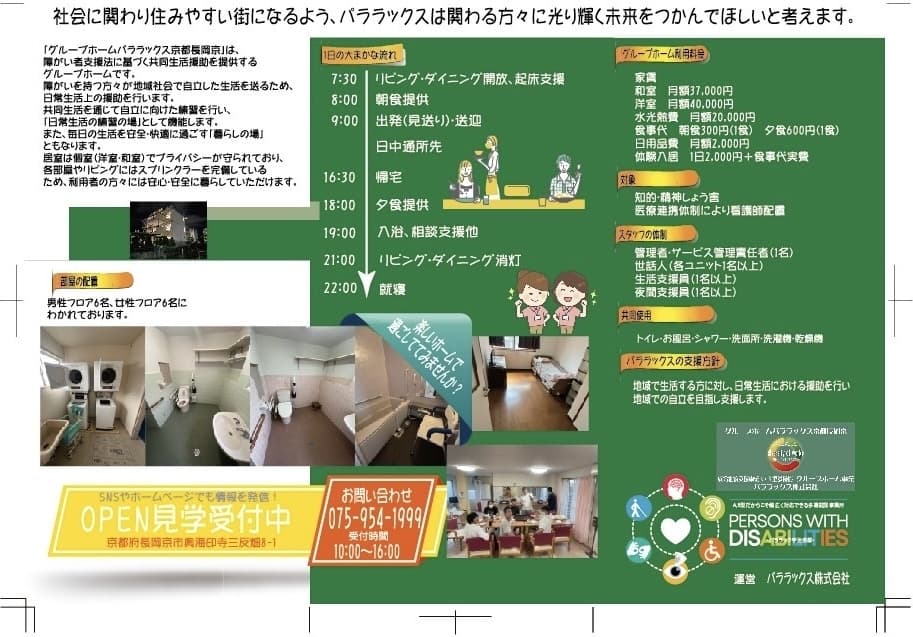身体・知的・精神の障がいをお持ちの方が世話人の支援を受けながら生活する居住の場です。